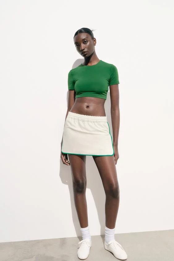 La primera en la que nos hemos fijado es en esta falda pantalón de tiro medio con cintura elástica ajustable con cordón interior. Sorprende por su detalle de vivos y costuras combinadas a contraste. Una falda pantalón cómoda y de estilo deportivo que está en las segundas rebajas a un precio de 5,99 euros en vez de su precio habitual que es de 22,95 euros. Se puede encontrar en la web de Zara en tallas de la XS a la XXL.