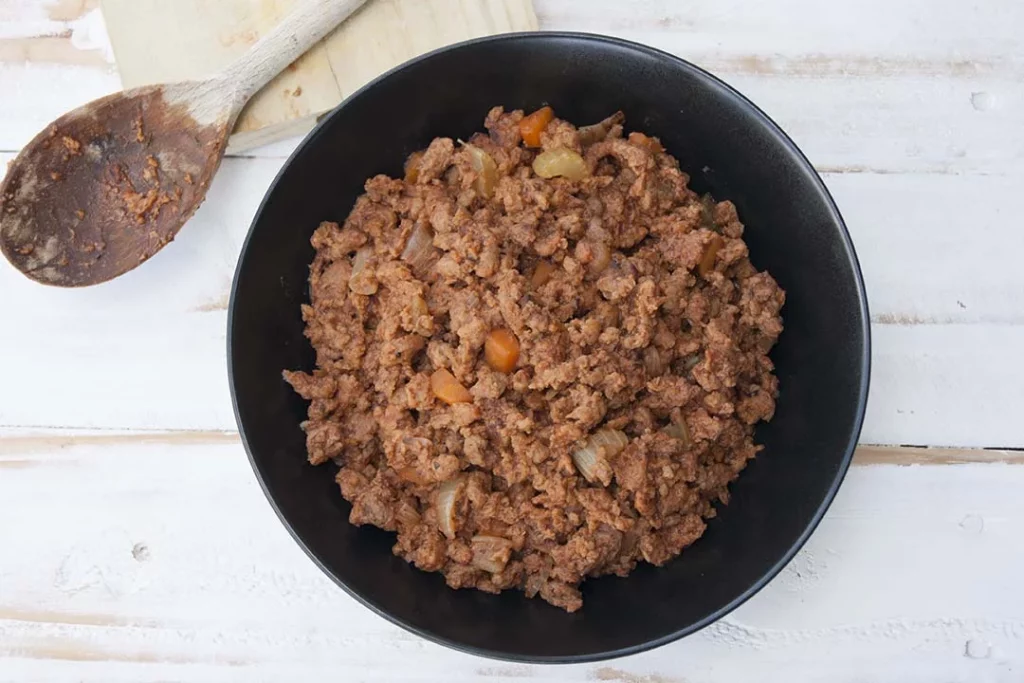 Para preparar las empanadillas, comenzamos hidratando la soja texturizada con agua caliente. Este proceso es crucial, ya que permite que la soja texturizada adquiera una textura suave y agradable. Para añadir más sabor, incorporamos salsa de soja y salsa inglesa al agua de hidratación. Estas salsas aportan un sabor umami profundo, mejorando notablemente el perfil de sabor del relleno. Dejamos que la soja texturizada repose en este líquido durante al menos 15 minutos, permitiendo que absorba bien todos los sabores.