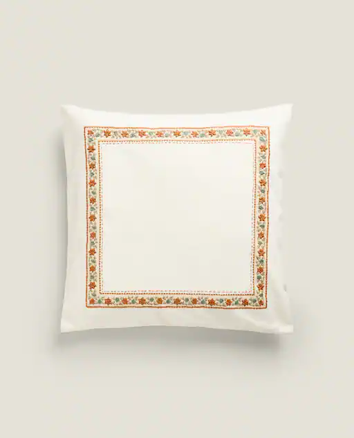 La cuarta que hemos elegido es esta funda de cojín de algodón en tono blanco con diseño bordado en lino en negro. Una original funda que no incluye relleno y que es una de las más originales que se pueden encontrar en las tiendas de Zara Home. La hemos encontrado en la web de esta tienda a un precio rebajado de 15,99 euros, en vez de su precio habitual de 25,99 euros.