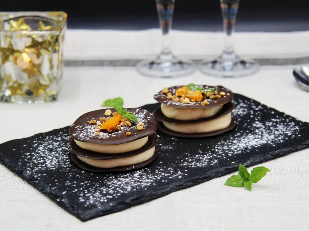 El secreto de unas milhojas de chocolate y mousse de mango exquisitas radica en la precisión al ensamblar cada capa. Después de hornear y enfriar el hojaldre hasta que esté dorado y crujiente, se cubre con una generosa capa de chocolate fundido que agrega un contraste delicioso al dulce de mango.