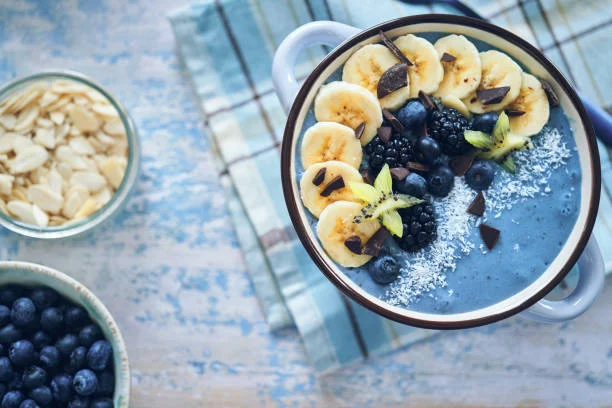 El siguiente paso en la preparación del smoothie bowl es la elección de los toppings. Aquí es donde se puede personalizar y añadir variedad al plato. Frutas frescas como moras, arándanos, y rodajas de plátano no solo mejoran el sabor, sino que también añaden colores vibrantes y atractivos al bol. Los cereales y la granola aportan una textura crujiente, mientras que las semillas y los frutos secos proporcionan grasas saludables y proteínas adicionales. Estos ingredientes complementan perfectamente la base del smoothie bowl, creando una combinación equilibrada de nutrientes.