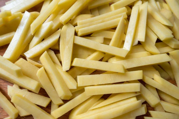La preparación de las patatas fritas comienza con una simple solución de bicarbonato de sodio disuelto en agua. Hervir las patatas en esta solución durante unos minutos antes de freírlas es suficiente para lograr el efecto deseado. Este proceso mejora significativamente la textura de las patatas fritas, haciéndolas más crujientes sin necesidad de añadir aceites o grasas adicionales.