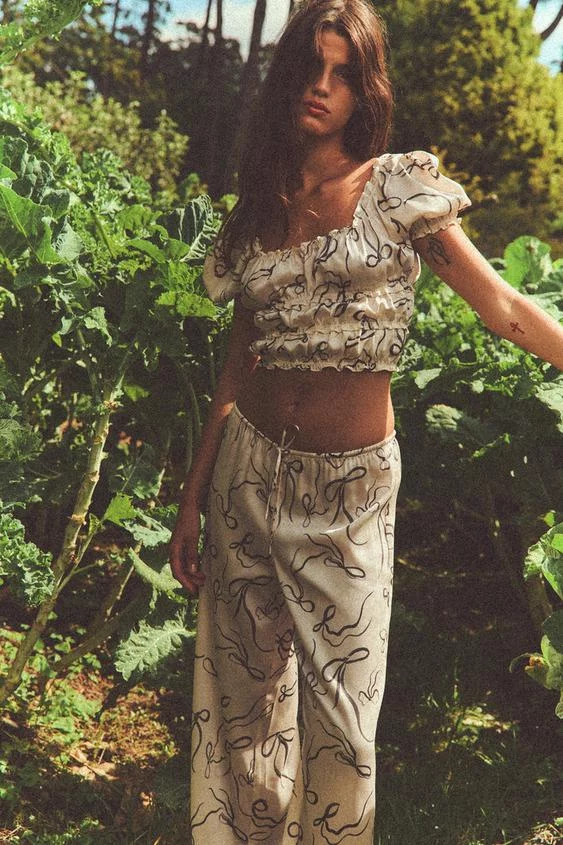 Esta temporada de primavera verano 2024 son tendencia los conjuntos estampados y se pueden encontrar con estilo pijamero, con blusa y falda larga o con estampado playero. Los conjuntos de dos piezas pueden constar de un top, una blusa, un chaleco o una camiseta como prenda superior y un pantalón larga o una falda midi como prenda inferior.