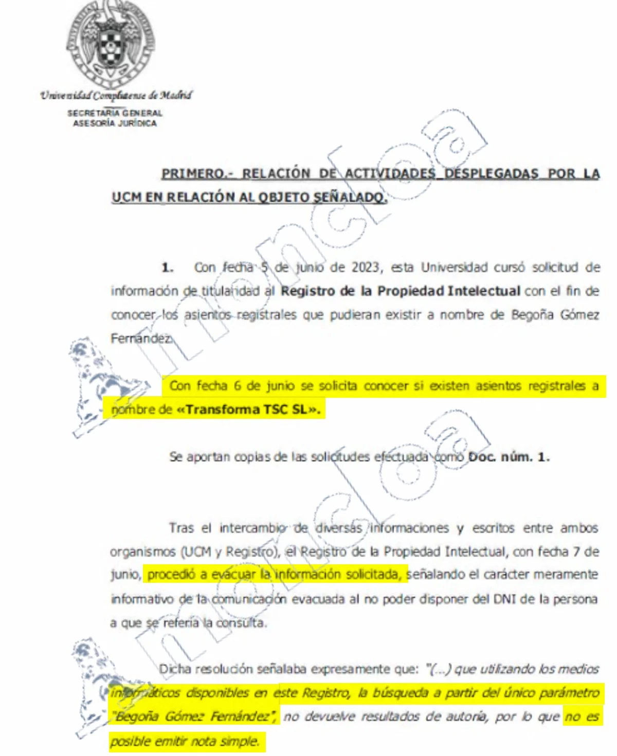 De hecho, la UCM acudió el 5 de junio de 2023 al Registro de la Propiedad Intelectual para «conocer los asientos registrales que pudieran existir a nombre de Begoña Gómez», pero no llegó a materializarlo. Dos días después, se acercó al Registro de Patentes y Marcas, encontrando dos a nombre de la mujer de Pedro Sánchez. Esa circunstancia consta en la auditoría interna de la propia UCM y fue entregada al juez que instruye la causa contra Gómez el 1 de julio de 2024, meses después de que se iniciara.