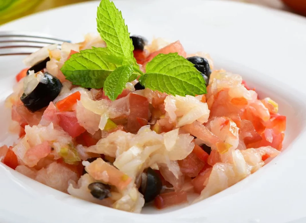 Los ingredientes básicos de la esqueixada catalana son: bacalao desalado desmenuzado, tomates maduros, pimientos, cebolla, aceitunas negras y un buen aceite de oliva virgen extra. Estos ingredientes se combinan para crear una ensalada colorida y llena de sabor. Los tomates aportan frescura y acidez, los pimientos y la cebolla añaden un toque crujiente, y las aceitunas negras completan el plato con su sabor característico.