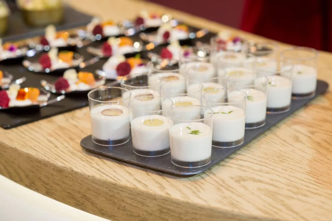 El ajoblanco es una clásica sopa fría andaluza conocida por su frescura y sabor distintivo, pero ¿qué tal si le damos un giro moderno? Imagínate sorprender a tus invitados sirviendo ajoblanco en chupitos fríos como aperitivos. Esta presentación no solo añade un toque elegante a tus eventos, sino que también realza la experiencia gastronómica con una nueva perspectiva.