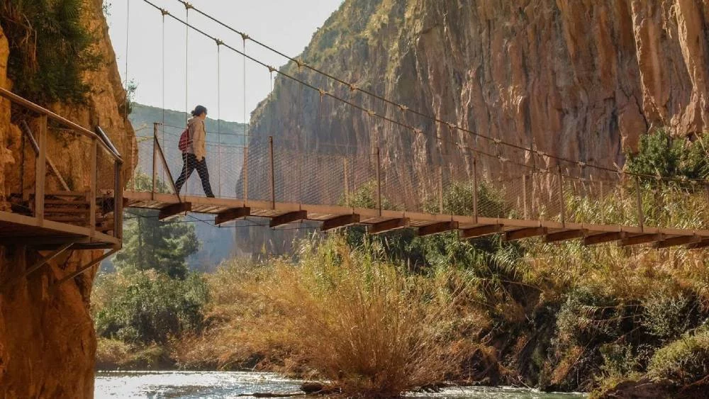 Quienes eligen la aventura, la ruta de los Pantaneros de Chulilla es la mejor opción y la más rica donde, además de conocer la piscina natural del charco Azul de Chulilla, se puede realizar este camino y descubrir otros paisajes espectaculares. Después de pasar por los miradores, la ruta propone una travesía aún más desafiante al atravesar dos puentes colgantes de 15 y 5 metros que pueden generar vértigo hasta al más resistente, pero que es uno de los momentos más impactantes de esta visita.