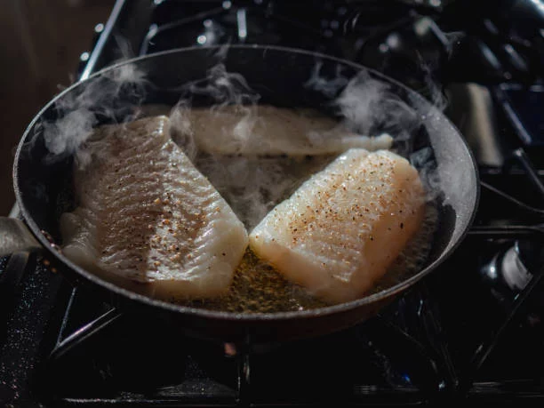 Mientras la salsa se espesa y se mezclan los sabores, sazona los filetes de bacalao fresco con sal y pimienta. En una sartén aparte, calienta un poco más de aceite de oliva y cocina los filetes de bacalao durante unos 3-4 minutos por cada lado, dependiendo del grosor de los filetes. El bacalao debe quedar dorado por fuera y jugoso por dentro. Una vez que el bacalao esté cocido, colócalo en la sartén con la salsa de tomate y deja que se impregne de los sabores durante un par de minutos más. Esto permitirá que el bacalao fresco absorba el sabor de la salsa y se mantenga jugoso.