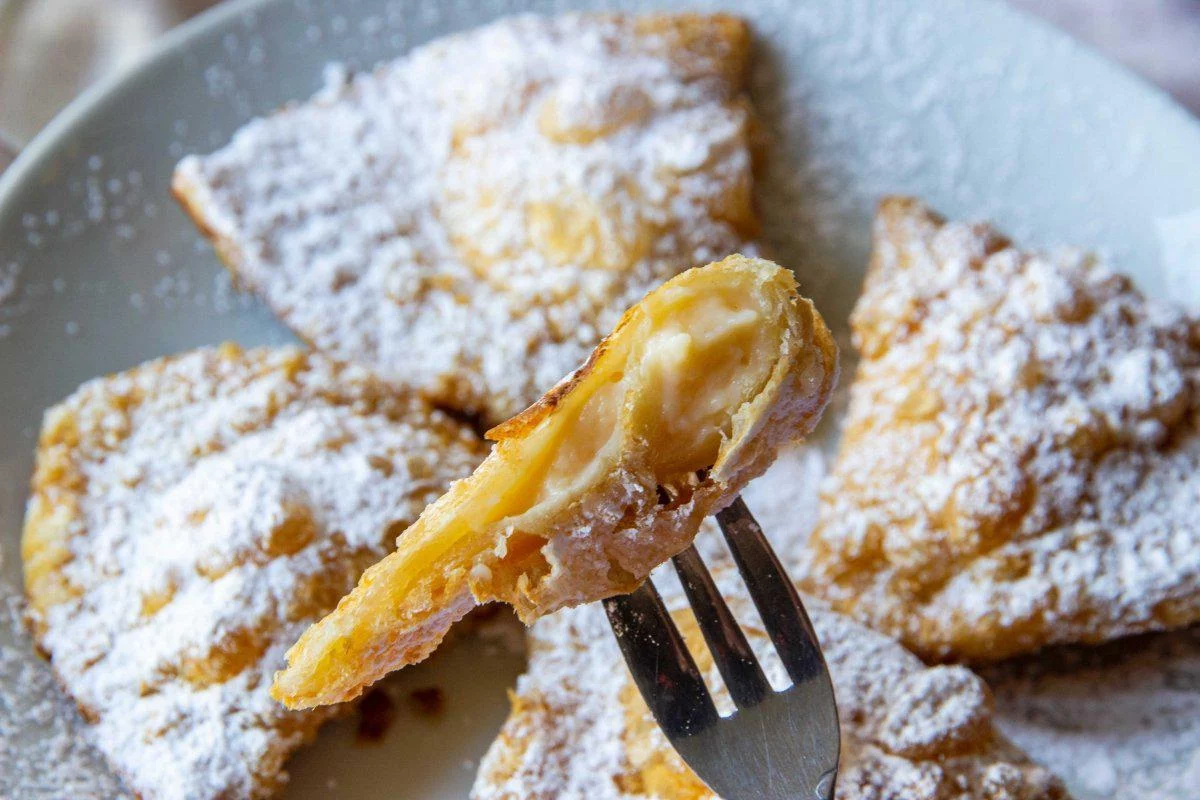 Estira la masa con un rodillo hasta que quede bien fina y córtala en pequeños círculos. Coloca una cucharada de la mezcla de huevo y azúcar en el centro de cada círculo de masa. Dobla la masa por la mitad, formando una especie de empanadilla, y presiona los bordes con un tenedor para sellarlos bien. Este paso es esencial para que el relleno no se salga durante la fritura.