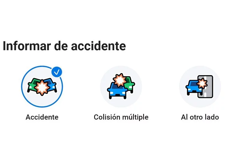 Uno de los avisos más importantes que se pueden reportar y que conviene conocer tiene que ver con el hecho de informar de la existencia de un accidente, lo que se puede observar o reportar a través de tres emojis muy sencillos de interpretar. El primero de ellos, en el que aparecen dos coches chocando en paralelo, significa que es un accidente con uno o dos vehículos implicados.