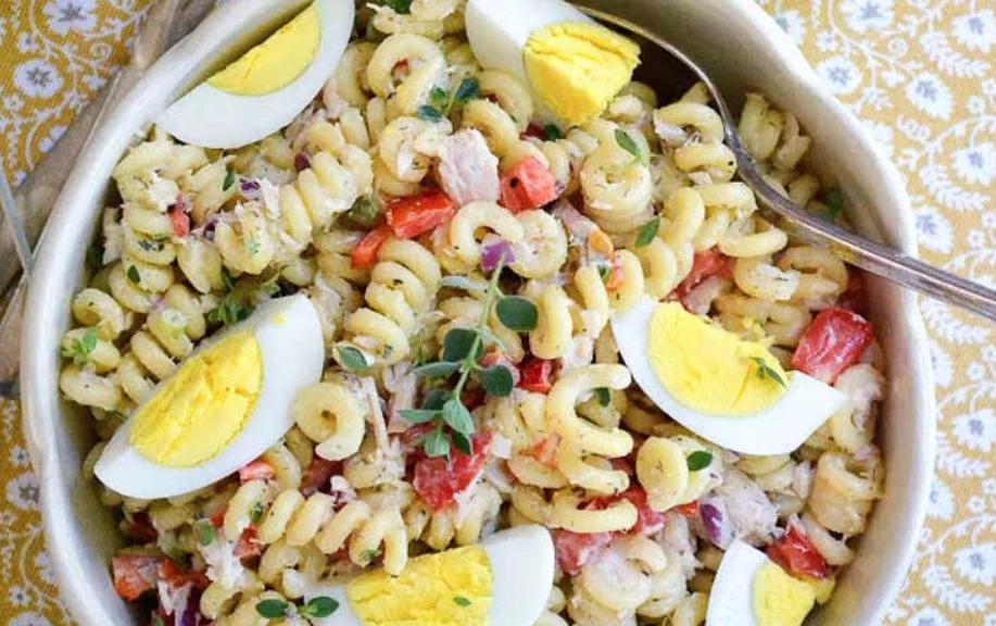Mientras la pasta se enfría, se pueden preparar los demás ingredientes. Se cortan las verduras en trozos pequeños y se desmenuza el atún. Una vez que la pasta esté fría, se mezclan todos los ingredientes en un bol grande, se añade el aderezo y se mezcla bien para que todos los sabores se integren. La ensalada está lista para servir o se puede refrigerar por un par de horas para que esté bien fresca al momento de comer.