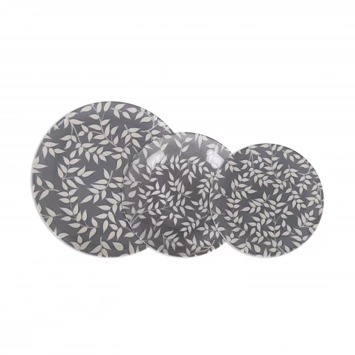 También nos hemos fijado en esta otra vajilla de porcelana Modelo Aracena con un diseño de plantas de 6 servicios. Cuenta con 18 piezas en porcelana con un delicado decorado floral inspirado en las hojas de eucalipto. Esta práctica vajilla incluye 6 platos llanos de un diámetro de 26,5 cm, 6 platos hondos de 18 cm y 6 platos postre de 19 cm. Es perfecta para una cena de verano en una terraza o un jardín. Una vajilla apta para el lavavajillas y el microondas que se puede encontrar en la web de Carrefour a un precio de 29,99 euros.