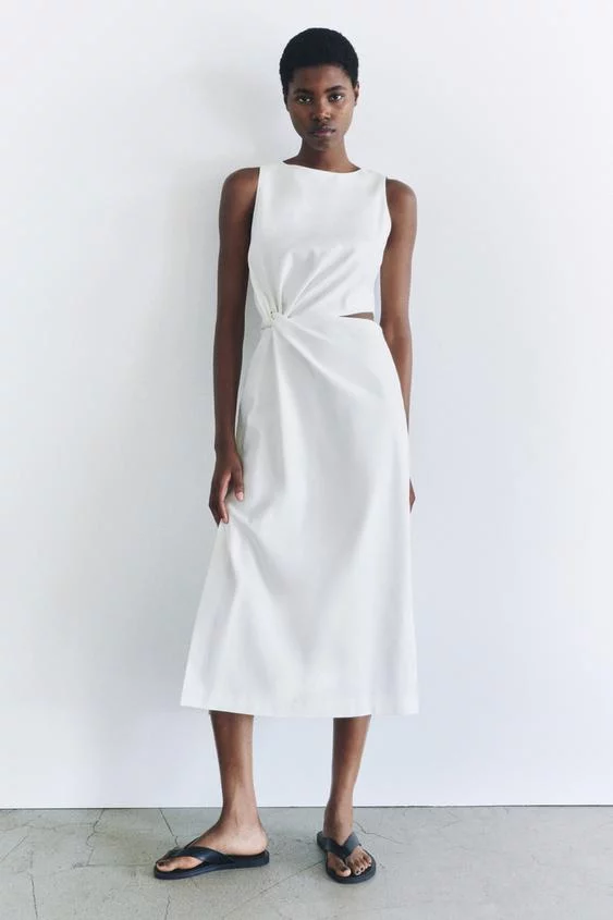 El verano es la mejor ocasión del año para encontrar prendas básicas perfectas para el fondo de armario como unas bermudas, unos tops en tono neutro, unos jeans o un vestido drapeado. Prendas que no pasan de moda y que seguro se pueden convertir en fundamentales en tu fondo de armario. Como ya estamos a mediados de agosto y ya la verdad es que queda poco tiempo de calor, podemos invertir en un vestido drapeado que puede convertirse en una prenda estrella del fondo de armario. Hemos estado en las tiendas físicas de Zara y hemos encontrado una gran variedad de vestidos drapeados que pueden ser perfectos para terminar el verano.