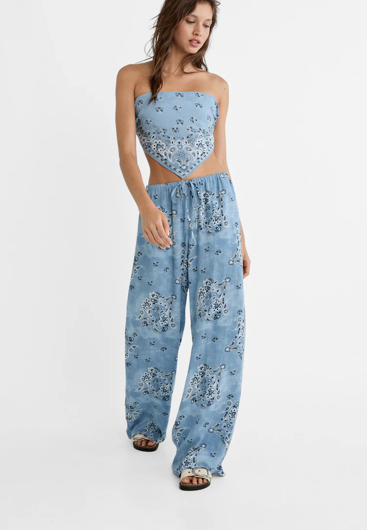 También nos encanta este modelo de pantalón estilo traje de color marrón, aunque también está disponible en otros colores. Un pantalón de tiro alto y bolsillos laterales y cintura con trabillas y elástica en espalda. Cuenta con un detalle de pliegues en delantero, pernera recta y cierre frontal con cremallera y botón. Un pantalón que tiene un precio en la web de Stradivarius de 25,99 euros.
