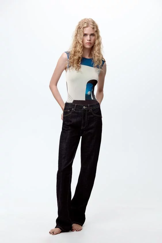 El primero en el que nos hemos fijado es en este body confeccionado en tul de cuello redondo y manga sisa. Estampación combinada a contraste de René Magritte ©C.H./ADAGP París, 2024. Un body cómodo y práctico perfecto para sorprender a todos en la visita a un museo o en un paseo por la tarde. Sorprende con su cierre en bajo con botones a presión. Este body se puede encontrar en la web de Zara en tallas de la S a la L y a un precio de 17,95 euros.