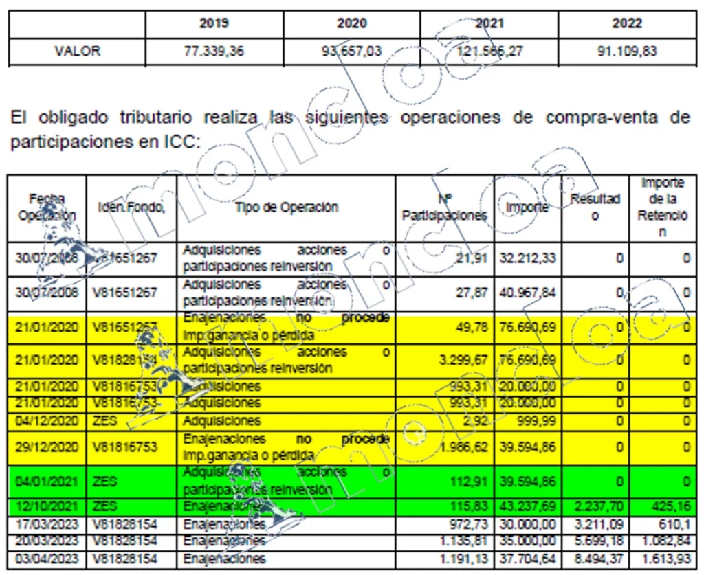 En cuanto a las acciones de empresas cotizadas, la Agencia Tributaria recoge la negociación media del cuarto trimestre de cada año de las acciones que posee de BBVA, Redeia, Telefónica y Repsol, que pasaron de los 82.922 a los 73.936 euros entre 2018 y 2023, con una valoración siempre positiva en cada uno de los ejercicios. Para la Agencia Tributaria, estas valoraciones «no suponen necesariamente alteración en la composición del patrimonio». «En los años 2021, 2022 y 2023 no realizó adquisiciones, por lo que no se produjo alteración en la composición del patrimonio por este motivo», apunta el informe.