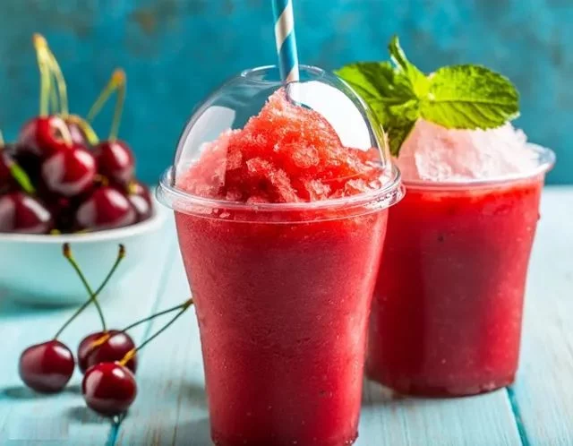 3Sirve en vasos individuales, decora según tu preferencia y disfruta de un delicioso granizado de cerezas hecho por ti