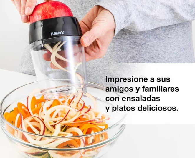 Otro punto fuerte del espiralizador de Amazon es su portabilidad, lo que lo convierte en un aliado perfecto no solo para el hogar, sino también para llevarlo en viajes o reuniones. Gracias a su tamaño compacto, cabe fácilmente en cualquier bolsa o mochila, permitiendo disfrutar de pastas de verduras frescas y saludables en cualquier lugar. Además, es una excelente opción para quienes siguen dietas especiales o buscan evitar el gluten, ya que ofrece una alternativa versátil y deliciosa a la pasta tradicional, sin renunciar al sabor ni a la textura que tanto gustan.