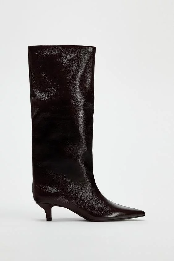 El primero que hemos elegido es este zapato tipo bota tacón en serraje combinada de Zara. Unas cómodas y prácticas botas de estilo cowboy en tono marrón y cuenta con originales detalles en relieve en la caña. Estas botas tienen tiradores laterales y cuentan con acabado en punta. Unas botas perfectas para combinarlas con vestidos estampados de flores en tonos otoñales o con una falda midi. La altura del tacón es de 7 cm y se puede comprar en tallas de la 35 a la 42. Estas cómodas botas se pueden encontrar en la web de Zara a un precio de 89,95 euros.