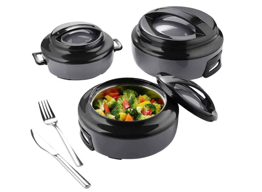 El set de recipientes para microondas de Lidl destaca no solo por su funcionalidad, sino también por su diseño. Cada uno de los recipientes cuenta con un interior de acero inoxidable y una estructura de doble pared, lo que permite mantener las bebidas y alimentos fríos o calientes durante más tiempo. Este detalle es fundamental cuando se trata de transportar o conservar la temperatura ideal de las comidas. Además, la tapa con cierre de rosca asegura que no haya derrames, convirtiéndose en una opción perfecta para llevar alimentos a cualquier lugar.
