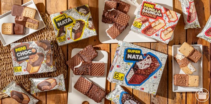 Mercadona no se limita al clásico sándwich de nata, sino que ofrece diversas alternativas para los amantes de este tipo de postre. Una de las opciones más destacadas es el Super Nata, que combina la cremosidad del helado de nata con una capa de chocolate con leche, todo entre dos galletas. Este helado está disponible en un paquete de 6 unidades y es ideal para quienes buscan una experiencia más intensa y deliciosa. Por otro lado, si prefieres una opción más ligera, el Mini Nata ofrece la misma combinación clásica en un formato más pequeño, perfecto para postres o como un tentempié dulce, también en paquetes de 6 unidades.
