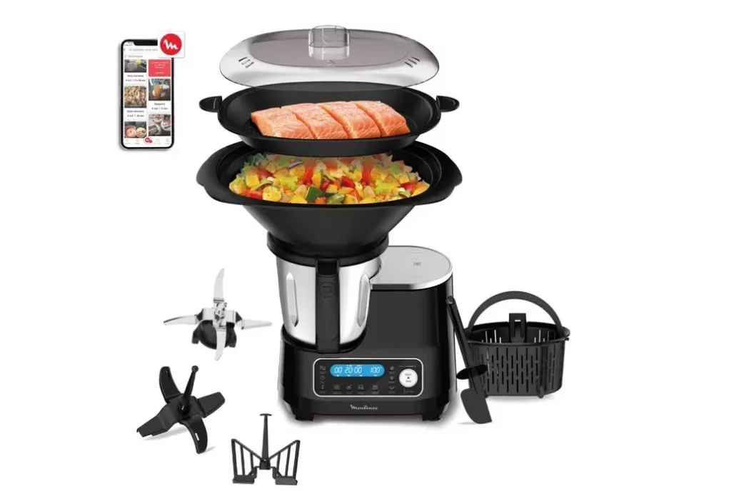 El robot de cocina ClickChef de Moulinex no solo ahorra tiempo y energía en la preparación de alimentos, sino que ofrece una solución integral para quienes buscan mejorar su alimentación diaria. La posibilidad de acceder a 200 recetas incluidas en su recetario facilita la creación de platos variados, nutritivos y deliciosos. Sus sensores avanzados garantizan que el cocinado sea siempre exacto, evitando errores comunes y elevando la calidad de cada preparación.