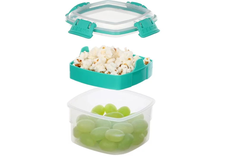 La versatilidad de este recipiente apilable lo convierte en una herramienta indispensable para quienes necesitan transportar varios tipos de aperitivos en un solo envase, evitando el uso de bolsas de plástico o envoltorios desechables. Al ser un producto duradero y reutilizable, no solo contribuye a reducir el desperdicio de materiales, sino que también se convierte en una opción más ecológica.