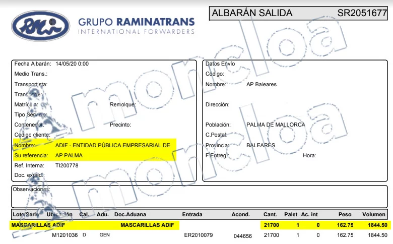 Las faltas del primer vuelo, enviado a Ceuta, se centraban en la diferencia de las 5.000 unidades enviadas y las 4.740 recibidas. Faltaban por entregar 260 mascarillas. «No hay ninguna reserva en el albarán de entrega», apuntó Vicente, asegurando que: «Es la primera noticia que tenemos de esta falta. En cualquier caso, la falta es posible. Podría ser un error de marcaje de la caja o un ‘robo’ en el transporte o en el lugar de entrega. Vamos a comunicar la incidencia al seguro por si acaso, aunque nos encontraremos con el problema de que el albarán de entrega está firmado sin reservas».