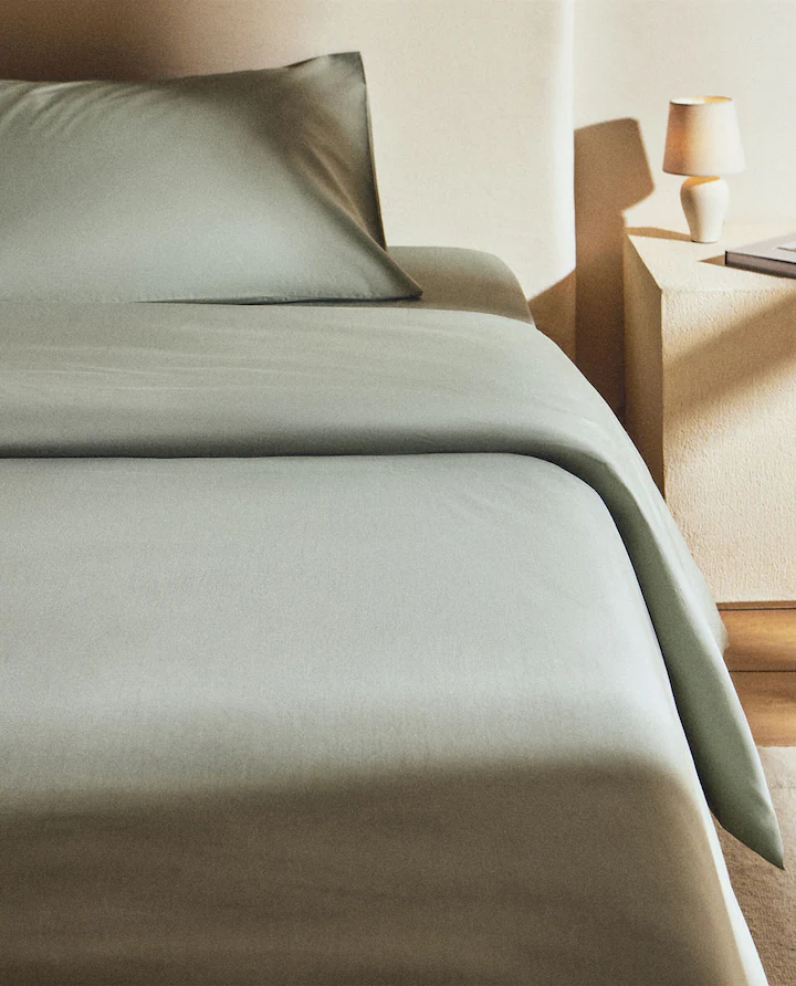 También hemos encontrado esta cómoda funda nórdica en algodón percal de 200 hilos liso en un agradable tono verde otoñal. Esta funda tiene cierre en la parte inferior, con botones ocultos en el interior. Una agradable y moderna funda nórdica en tono liso que es una buena opción para el otoño.