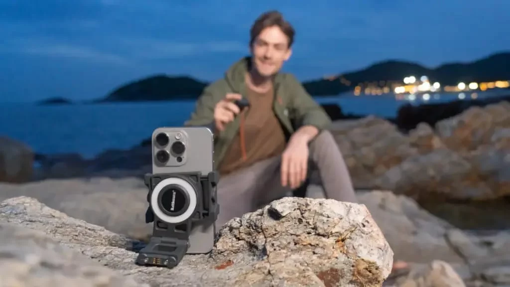 Cabe destacar que el control de las cámaras no se limita a lo mencionado anteriormente, el equipo puede desmontarse para transformarse en un mando a distancia. De esta manera, el mecanismo de soporte se puede poner sobre una superficie para realizar una captura a distancia, como un pequeño trípode conectado por Bluetooth. Esta alternativa funciona hasta los 10 metros y es ideal para los amantes de fotografías que quieren sacar imágenes únicas.
