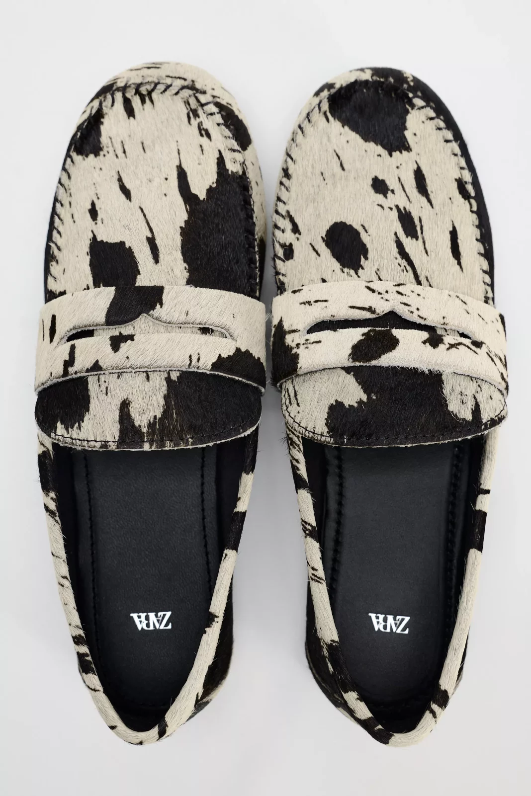 El cuarto que nos ha sorprendido es este zapato tipo mocasín en piel con pelo. Nos ha encantado su detalle de antifaz en la parte delantera y su acabado en punta redonda. También sorprende por su altura de la suela de 0,5 cm. Unos zapatos muy originales y con un diseño muy moderno que puede ser una buena opción para combinarlo con unos pantalones blancos de pata ancho. Un zapato cómodo, pero que no debe poner en los días de lluvia porque se puede estropear. Estos cómodos zapatos destalonados se pueden encontrar en la web de Zara en tallas de la 35 a la 42 y a un precio de 59,95 euros.