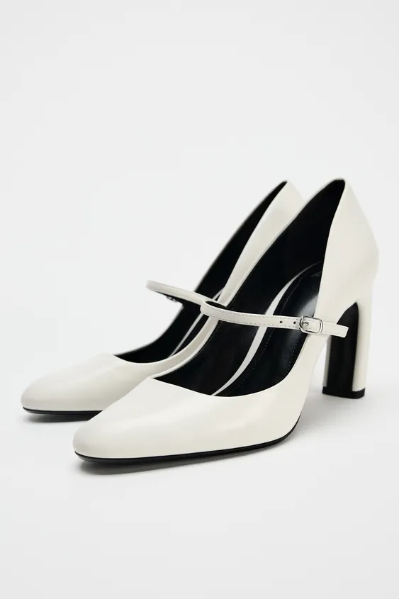 Por último, nos hemos fijado en este zapato de tacón curvado en tono blanco que cuenta con detalle de tira con hebilla ajustable en el empeine. Cuenta con una altura del tacón de 8,5 cm, que es bastante favorecedor, pero también bastante alto. Unos zapatos elegantes y vistosos perfectos para los primeros días del otoño y que se pueden combinar con unos pantalones blancos de pata ancha o estrechos en el mismo tono. Estos preciosos zapatos se pueden encontrar en la web de Zara en tallas de la 35 a la 42 y a un precio de 35,95 euros.
