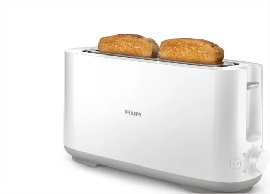 El Tostador Philips HD2590/00 es perfecto para quienes buscan un tostado uniforme y eficiente. Con su ranura larga, es ideal para tostar diferentes tipos de pan, incluso los de mayor tamaño. Su diseño en blanco lo convierte en una opción elegante y moderna para cualquier cocina.