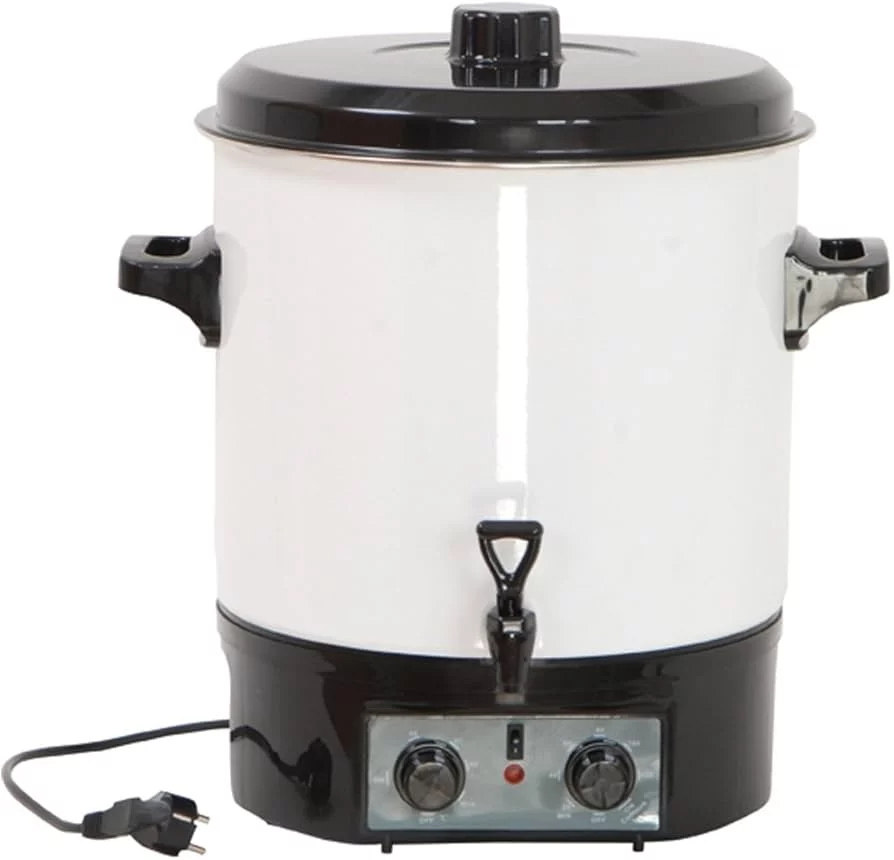 Esta olla eléctrica de Lidl tiene capacidad de hasta 27 litros y una potencia de 1800W, dónde brinda una particularidad y es que hay espacios para dos tipos de cocina debido a que una rejilla separa el habitáculo. Esto quiere decir que se pueden hervir 14 botes de conservas distintas de manera simultánea. Pero eso no es todo, y es que esta olla eléctrica integra un grifo con el que poder servir desde la olla nuestras sopas o bebidas calientes. En cuanto a su diseño tiene una carcasa esmaltada y sus asas termoaislantes.