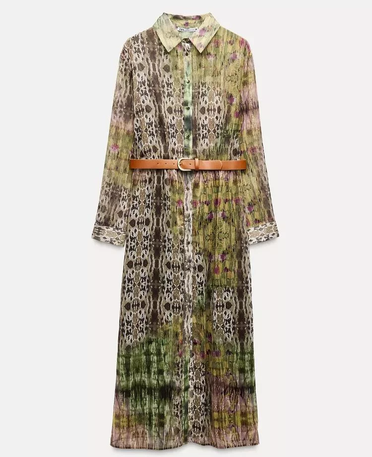 Por último, pero no menos importante, Zara nos trae este vestido que glamour en su máxima expresión. A un precio de 45,95 euros, este vestido multicolor con cuello solapa y manga larga es la prenda ideal para ser la estrella en cualquier evento de otoño. La cintura elástica y el forro interior garantizan comodidad, mientras que el detalle del tejido con hilo metalizado y los botones dorados le dan ese toque festivo y sofisticado. Este vestido es perfecto para llevar a una fiesta o una cena elegante.
