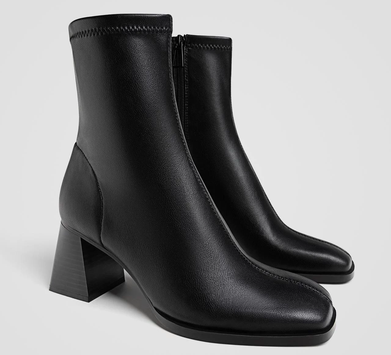 Estos botines de Stradivarius están disponibles por 29,99 euros, y resaltan por su material elástico y corte stretch, lo que los hace demasiado cómodos para llevar todo el día. Con una altura de tacón de 7 cm, podrás encontrarlos en varios colores y tienen un cierre mediante cremallera lateral, lo que los convierte en una opción elegante y pero también funcional.