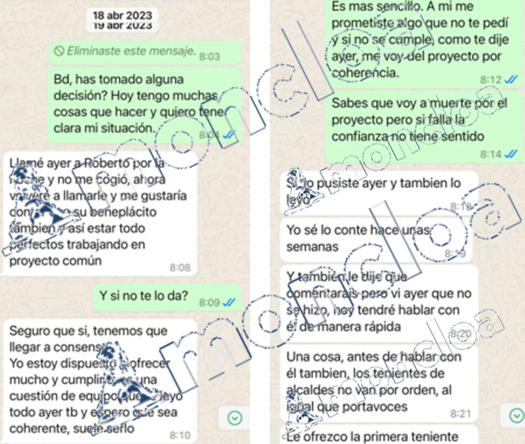 Retolaza no cedía en su propósito de controlar a todos dentro del partido, incluso con la promesa de otorgar puestos en la lista de las pasadas elecciones de 2023. Las conversaciones, a las que ha tenido acceso este diario, no dejan lugar a dudas sobre estos compromisos, muchos de ellos incumplidos.