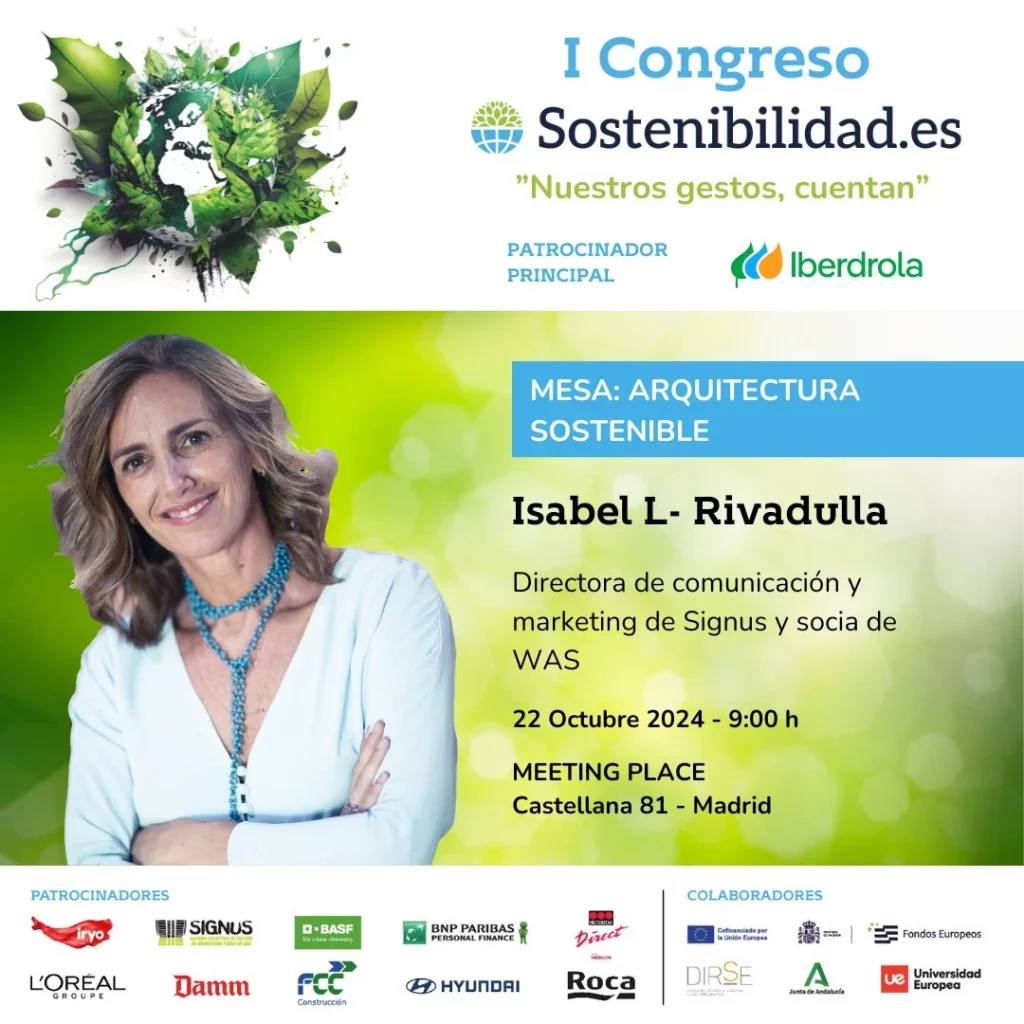 Para esta mesa, que se desarrollará en la primera jornada entre las 09.50 y las 10.25 horas, participarán como ponentes profesionales líderes en sostenibilidad y conocedores de la importancia de una evolución en el urbanismo, de la construcción inmobiliaria y de los espacios interiores y reciclaje de materiales, el director de Relaciones Institucionales y sostenibilidad de ROCA, Carlos Velázquez; la Directora de Sostenibilidad de la Universidad Europea de Madrid (UEM), Julia Ayuso; y Jorge Fernández, director comercial Nacional de ECOCERO. Todo ello, con la moderación de Isabel López Rivadulla, directora de comunicación y markéting de Signus, el sistema integrado de gestión de neumáticos usados y socia de la asociación Women Action Sustainability (WAS).