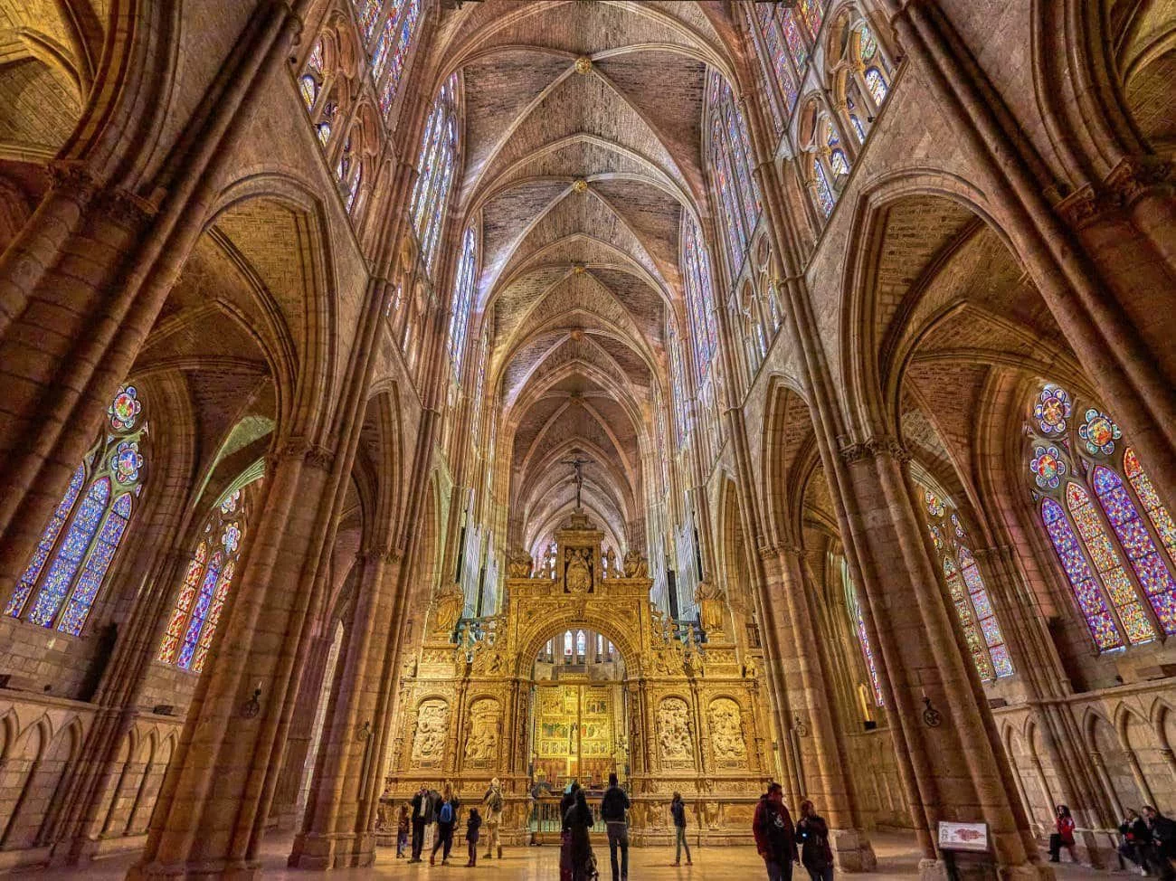 El interior de la Catedral de León no es menos impresionante. Sus altos techos y arcos apuntados crean una atmósfera que eleva el espíritu, pero lo que más llama la atención son sus vidrieras. Considerada una de las mejores colecciones de vidrieras medievales del mundo, la luz que atraviesa estos vitrales transforma el interior en un espectáculo de color. Los tonos rojizos, azules y dorados pintan las paredes y el suelo, proporcionando una experiencia visual única que solo la Catedral de León puede ofrecer.