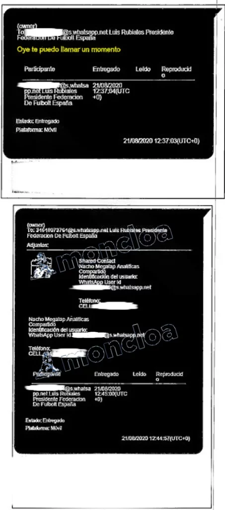 El 21 de agosto de 2020 Víctor de Aldama, supuesto comisionista en el centro de la trama mascarillas junto a Koldo García, ex asesor del ministro Ábalos, enviaba «un mensaje de whatsapp a Koldo para remitirle un documento en pdf bajo el título «Presentación control de pasajeros» a Luis Manuel Rubiales, entonces presidente de la RFEF», según recoge el último informe de la Unidad Central Operativa (UCO) de la Guardia Civil presentado en la Audiencia Nacional. La cadena de mensajes finalizó con un whatsapp de Rubiales advirtiendo de que «la llamada ya ha sido realizada». Aquel año, el comienzo y gran parte de la liga de fútbol se celebró a puerta cerrada.