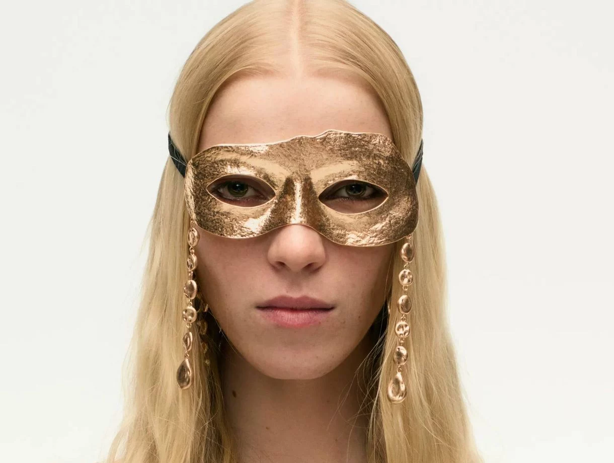 Otro de los accesorios más destacados de la colección de Halloween de Zara es la máscara metálica en forma de antifaz, que tiene un precio de 29,95 euros. Este antifaz, con su diseño detallado y los colgantes metálicos que se mueven con cada paso, es ideal para quienes buscan un look llamativo sin necesidad de invertir demasiado tiempo en un disfraz completo.