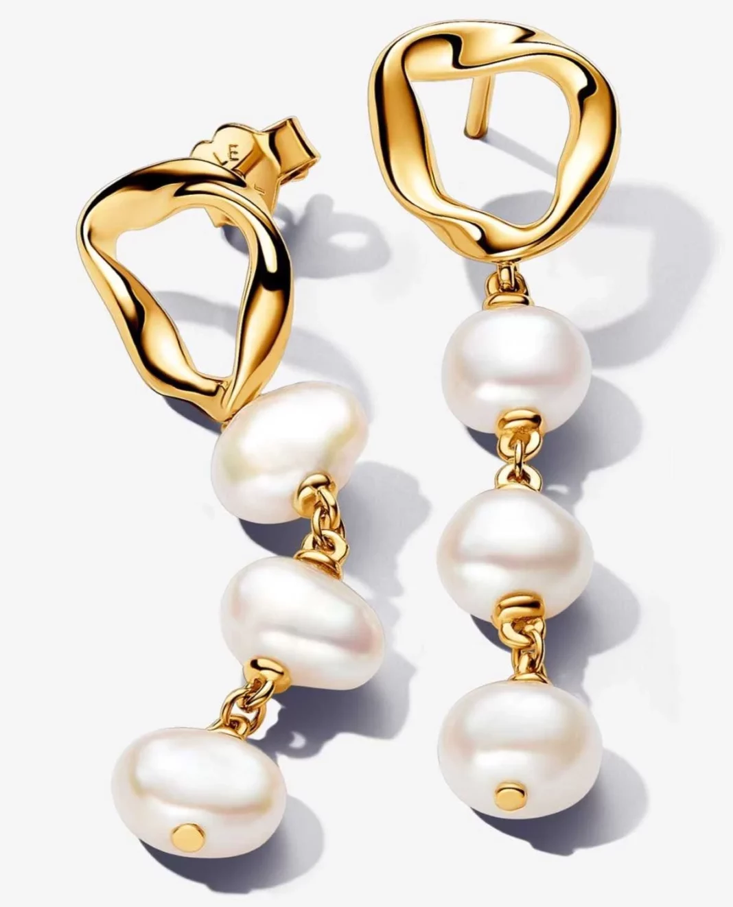 Uno de los diseños más destacados de esta nueva colección. En Pandora, este modelo se ha convertido en uno de los favoritos por su elegancia y sofisticación. Los pendientes largos, bañados en oro de 14 quilates, cuentan con un aro de grosor variable, del que cuelgan tres delicadas perlas de agua dulce con un acabado nacarado que añade un toque de distinción. Este diseño de Pandora ya está disponible en sus tiendas por toda España, a un precio de 139 euros, aunque también se puede adquirir en su tienda online.