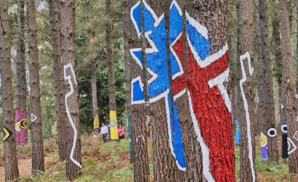 El Bosque de Oma, una de las joyas naturales y artísticas del País Vasco, es un lugar único que combina arte y naturaleza en un solo espacio. Ubicado junto a Gernika, en la comarca de Busturialdea, este bosque mágico es obra del artista Agustín Ibarrola, quien decidió convertir un bosque de pinos en una obra de arte. Con pinceladas de color y creatividad, el Bosque de Oma se ha ganado su reputación como un destino fascinante para quienes buscan una experiencia de arte al aire libre.