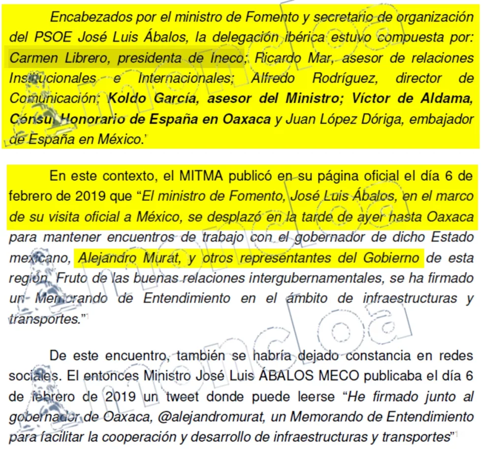 El acto tuvo lugar el 3 de febrero de 2019. Un día después, Ábalos y Aldama volaron a México para reunirse con varios miembros de Las Cortes de México y del Gobierno, como con el senador Ricardo Monreal y Alejandro Murat, tal y como denunció el PP y corroboró el propio Senado del país centroamericano en una nota de prensa, donde Aldama se le nombró como Cónsul Honorario de España en Oaxaca.