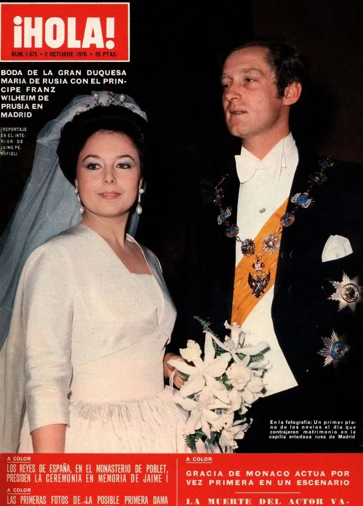 Por ello su boda a principios de 1976 acaparó los titulares de la prensa nacional, portada de ¡Hola! incluida. Se unió en la iglesia ortodoxa de la calle Nicaragua a otro monarca depuesto Francisco Guillermo de Prusia. A la ceremonia asistieron los recién llegados al trono Juan Carlos y Sofía.