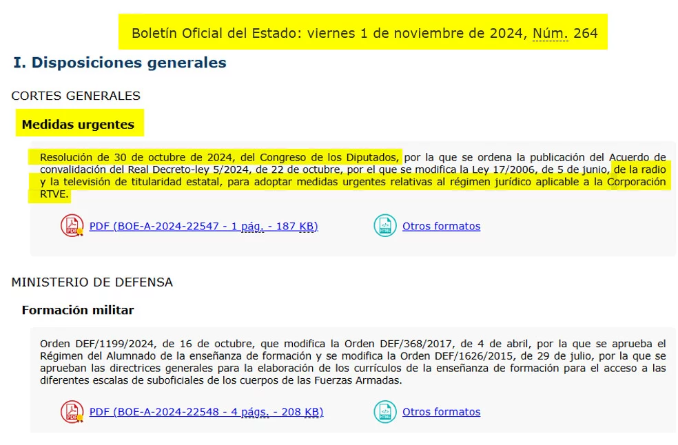 LAS MEDIDAS URGENTES DEL GOBIERNO EN EL BOE: RTVE
