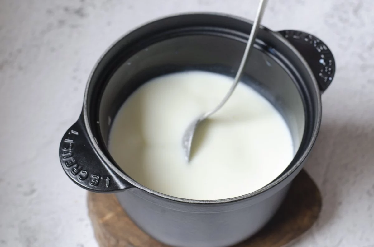 A continuación, incorpora los 40 gramos de yogur firme a la mezcla. Es fundamental remover suavemente para asegurarse de que el cultivo se distribuya de manera uniforme en la mezcla líquida. Una vez que todo esté bien incorporado, deberás transferir la mezcla a un envase hermético. Cubre el recipiente con una toalla oscura para mantener una temperatura constante. Esto ayudará a fomentar un ambiente propicio para la fermentación, que es el siguiente paso en el proceso.