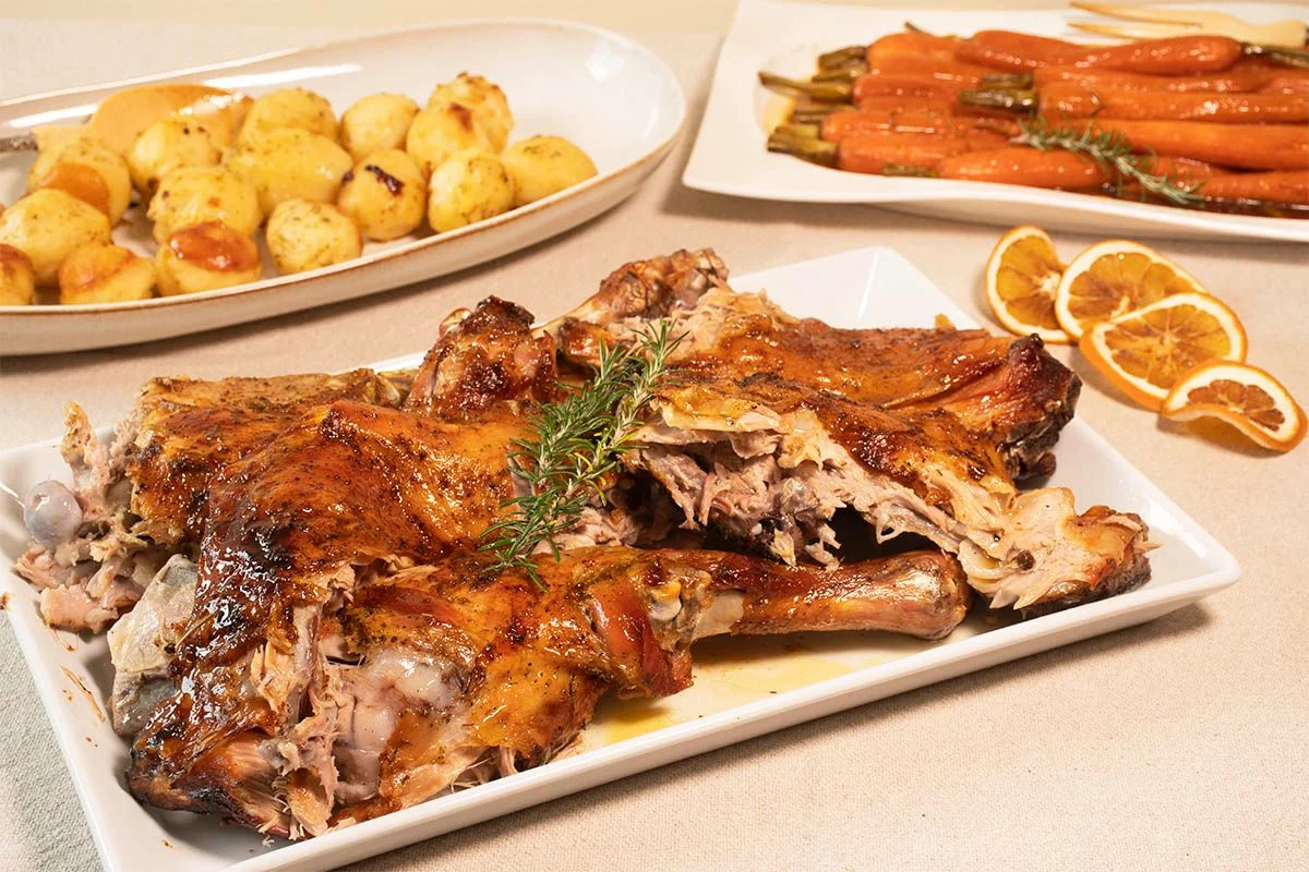 Una vez en el horno, el cordero asado se cocina lentamente, permitiendo que los jugos se integren y la carne se torne suave y jugosa. Durante la cocción, se añade agua para evitar que el cordero se seque y también se rocía ocasionalmente con su propio jugo, lo cual le da un sabor concentrado y una piel dorada y crujiente. Este proceso lento y meticuloso es lo que transforma la carne en un plato inolvidable, digno de cualquier celebración navideña.