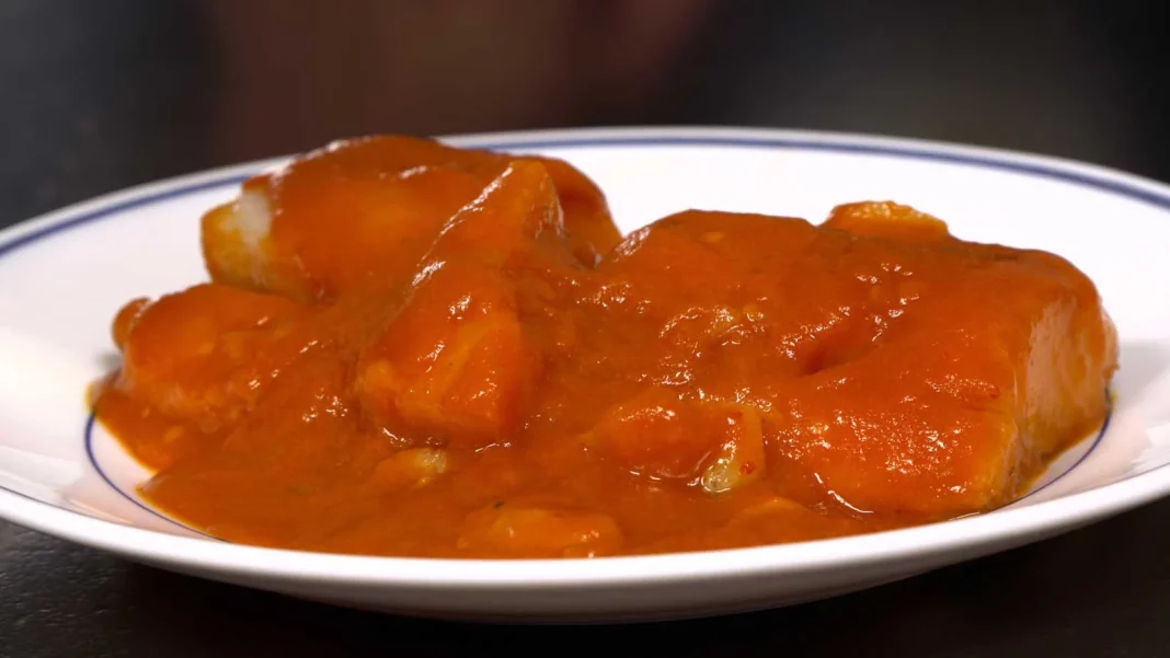 El secreto de un buen bacalao a la vizcaína está en la paciencia y el mimo con que se cocina. El primer paso es hidratar los pimientos choriceros y sacarles la carne, que será la base de la salsa. Luego, en una cazuela, se sofríen lentamente las cebollas con el ajo hasta que estén caramelizados. A esto se añaden los tomates y la carne de los pimientos, dejando que todo se cocine a fuego bajo para que los sabores se mezclen de manera perfecta.
