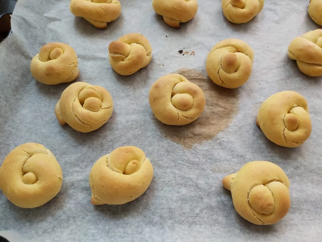 - Formar los melindres: Precalienta el horno a 180°C. Toma pequeñas porciones de masa y forma bolitas del tamaño de una nuez. Coloca las bolitas en una bandeja de horno forrada con papel vegetal, dejando espacio entre ellas para que no se peguen al hornearse.